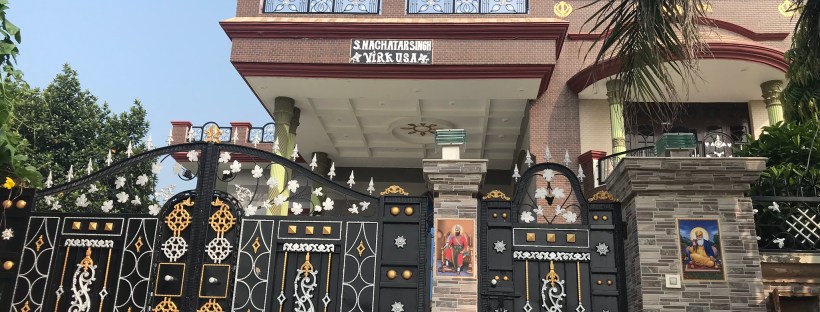- Remittance houses. According to my interlocutors, in recent years there has been less investment in remittance houses than in the past, at least in Punjab. There are still examples of very luxurious houses, especially in villages or rural areas, where perhaps the local competition between families is more marked than in urban areas. These competitions sometimes challenge the traditional hierarchies linked to caste or social class membership. Remittance houses affirm the high social status reached by the family in the context of origin, through their facades, the richness of the materials used and the architectural style, the richly decorated gates. Many of these houses are characterized by symbolic objects (such as water tanks on the roof in the shape of airplanes, clearly linked to migration), decorative statues (also placed on the roof, testifying to the strength and honor – izzat – of the family: horses, eagles but also bodybuilders who lift weights, etc.) and signs at the entrance with the owner’s name (where the family’s caste or goth and the settlement country are often specified). However, the fate of the already built remittance houses, for example in the Doaba region (Taylor, 2013), seems to be uncertain.