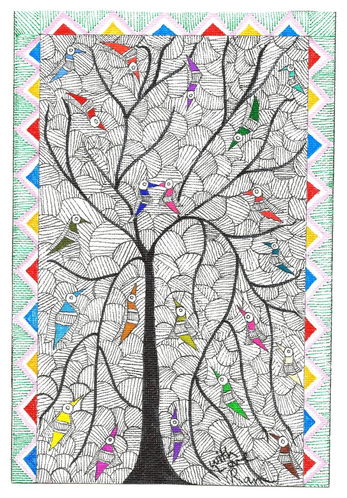 Shortly after an online chat we had (with a canvas of the Tree of Life by Klimt as my background at home), a close participant of mine, by now a British Indian friend, sent to me via airmail an original paper card: Winter Season’s greetings to keep up our connection as warm as a handicraft could make it. Not that we did not interact via WhatsApp messages anyway, but the thrill of opening my letter box, tearing open the envelope stamped with the Queen’s profile, and relishing the rough side of a rice paper made the visual enjoyment of shapes and colours, of birdies on branches, all the more pleasant.
