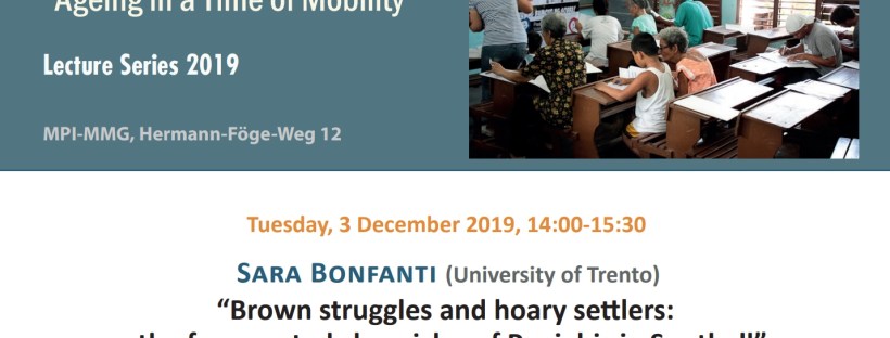 Sara Bonfanti (University of Trento) “Brown struggles and hoary settlers: the fragmented chronicles of Panjabis in Southall” MAX PLANCK RESEARCH GROUP “Ageing in a Time of Mobility” MPI-MMG, Hermann-Föge-Weg 12 Lecture Series 2019 Tuesday, 3 December 2019, 14:00-15:30 Abstract